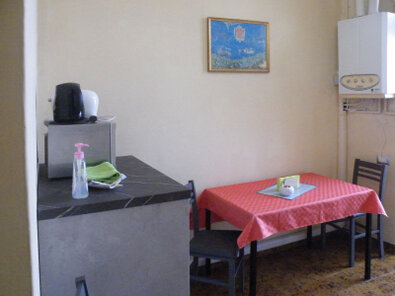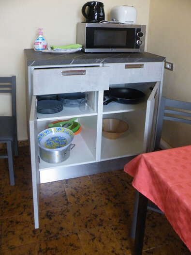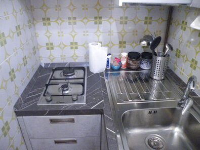La piccola cucina è completa di lavello e piano cottura con due fuochi.